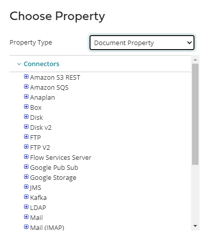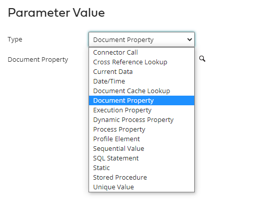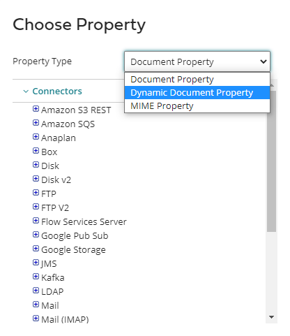 For using data from Dynamic Document properties, we are going to select Type as ‘Document Property’. You will notice that there is no option to specify type as ‘Dynamic Document Property’. This option is not visible by default in Boomi.