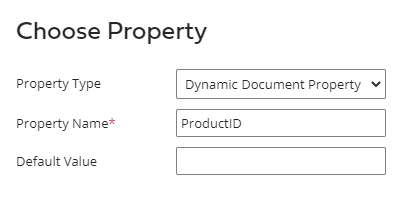 Enter the name of the property that you want to fetch and Default value for this property to be used in case data was not available (not mandatory). Repeat this step for every data field that was stored in Dynamic Document properties.