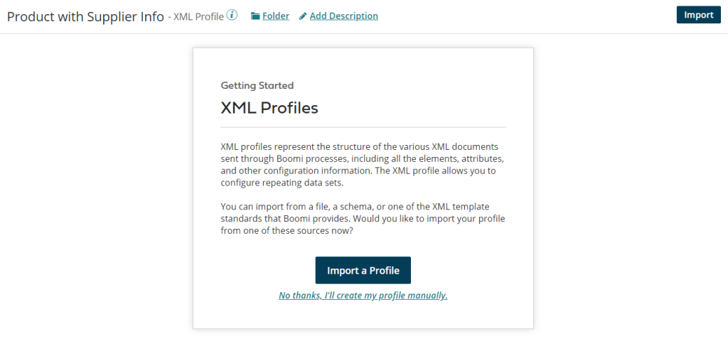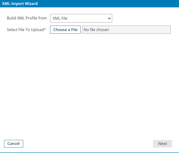 Similarly, we are going to create a profile for the combined data in XML format. Repeat the steps to create a profile, but create an XML profile this time. This is the screen you will be greeted by when you create a new XML profile.