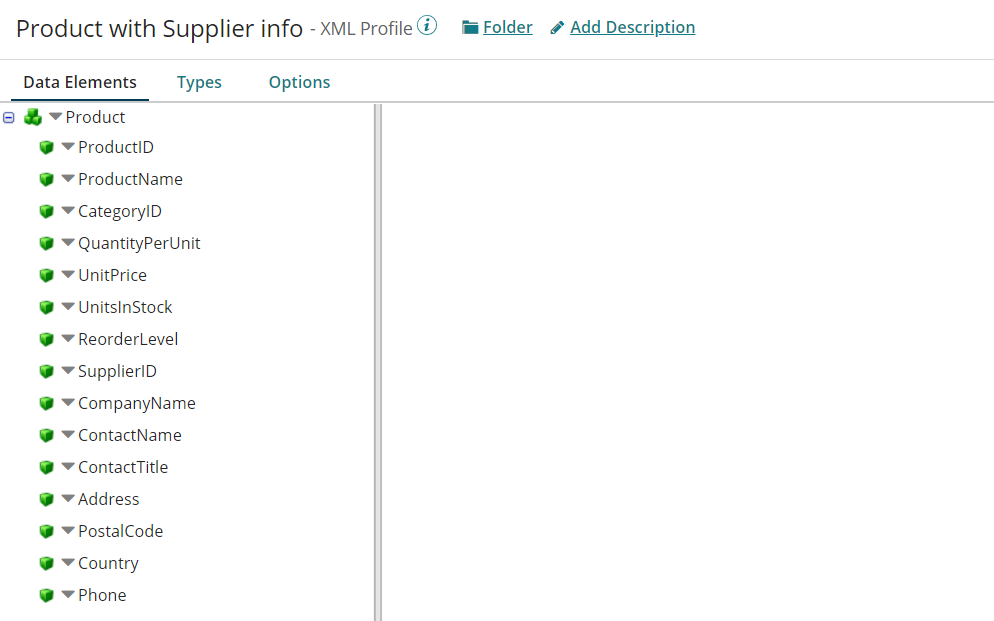 For every data field related to Product and Supplier that we have in our message, we will create a corresponding element in this profile.
