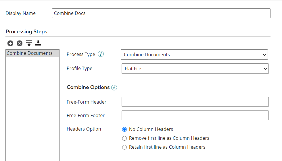 Data Process shape provides you with a number of options for manipulating document data within a process, from splitting and combining documents to zipping and unzipping data. You can define multiple processing steps to perform more than one action on the document data. The processing steps are executed in the order defined in the Data Process shape. Each processing step operates on the data output from the previous processing step.