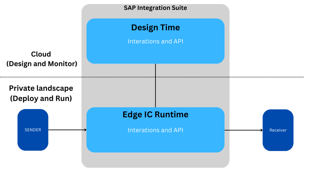 Edge integration cell is an optional hybrid runtime offered as part of SAP Integration Suite. It enables you to design and monitor your integration content in the cloud and deploy and run integration content in a private landscape.